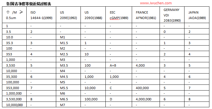 GMP车间ABCD级洁净等级标准表参考: