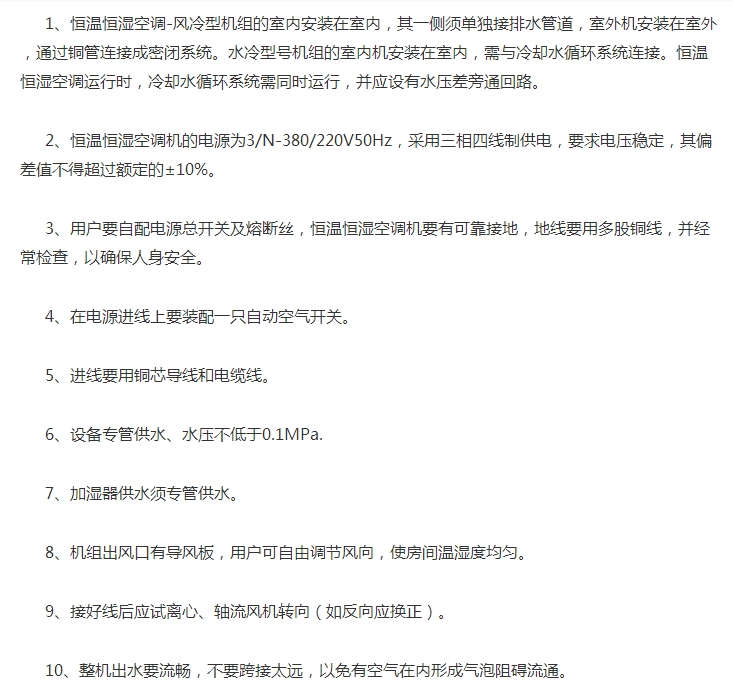 随便拿出一点分享给大家,就能看到恒温恒湿空调安装的注意事项有十多个项目,足见其重要性。
